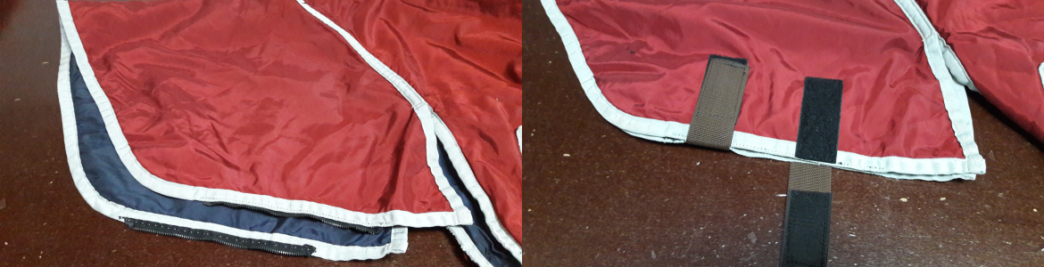Een hals met een kapotte ritssluiting en de eigenaar wilde er graag een klittenband sluiting op hebben.